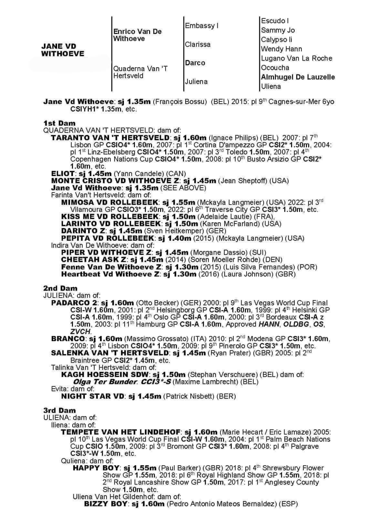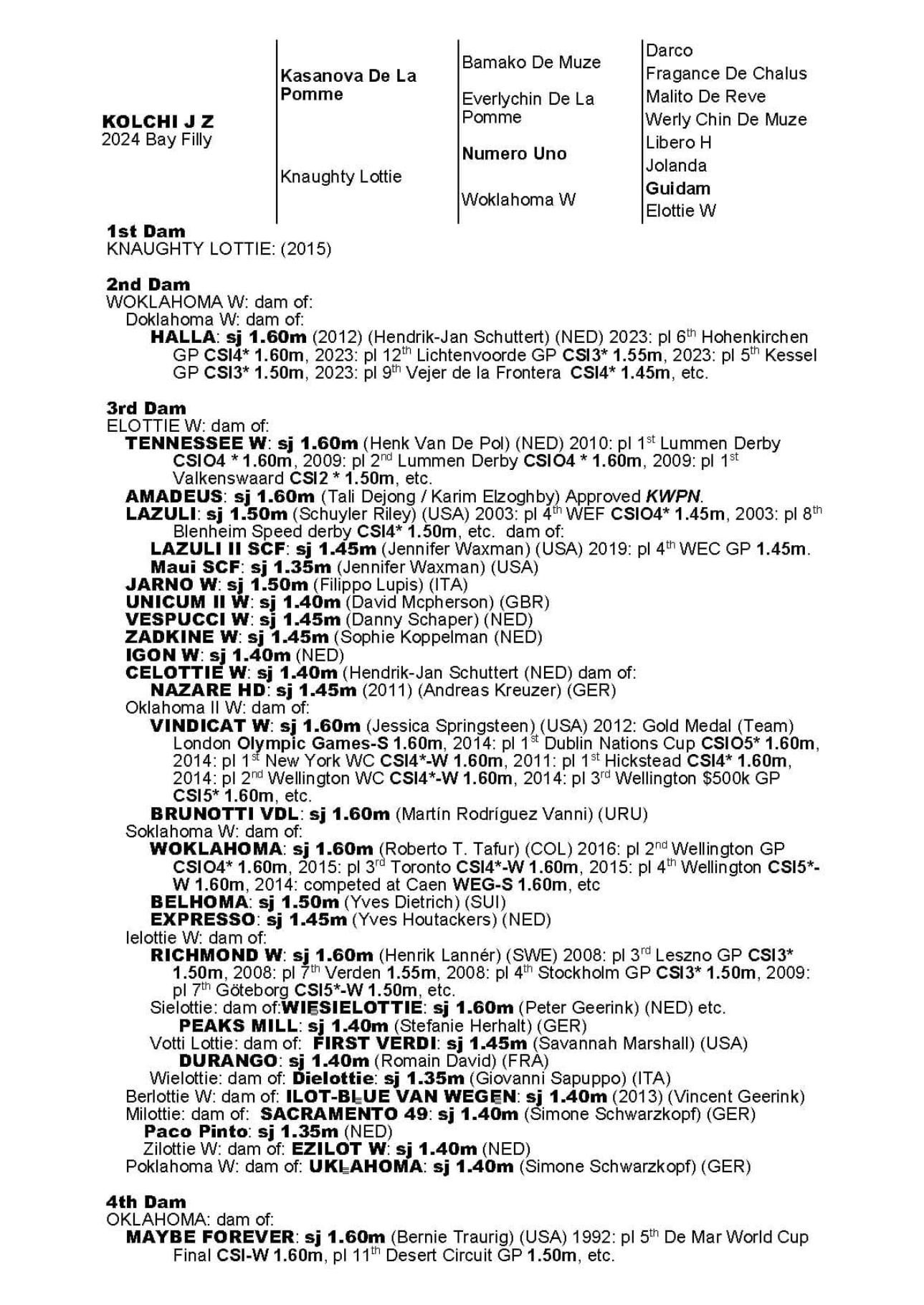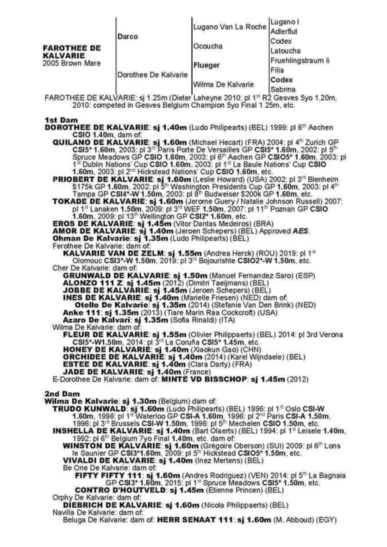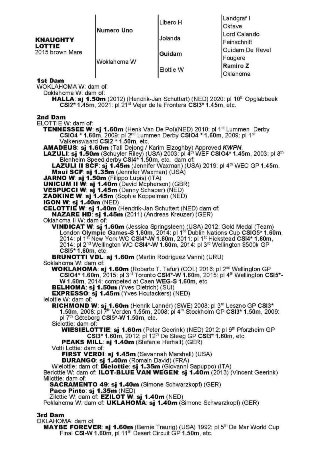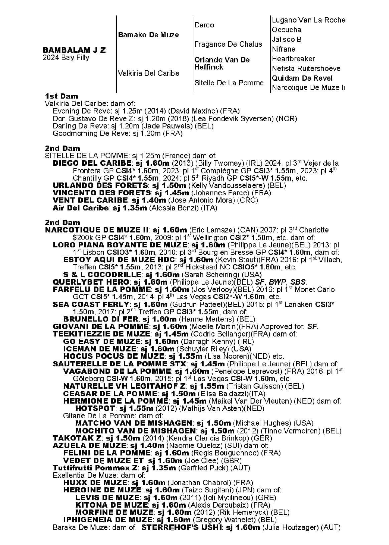 Sister to 2 approved stallions.Out the sister to the 160 performer Giego Del Caribe. Damline…