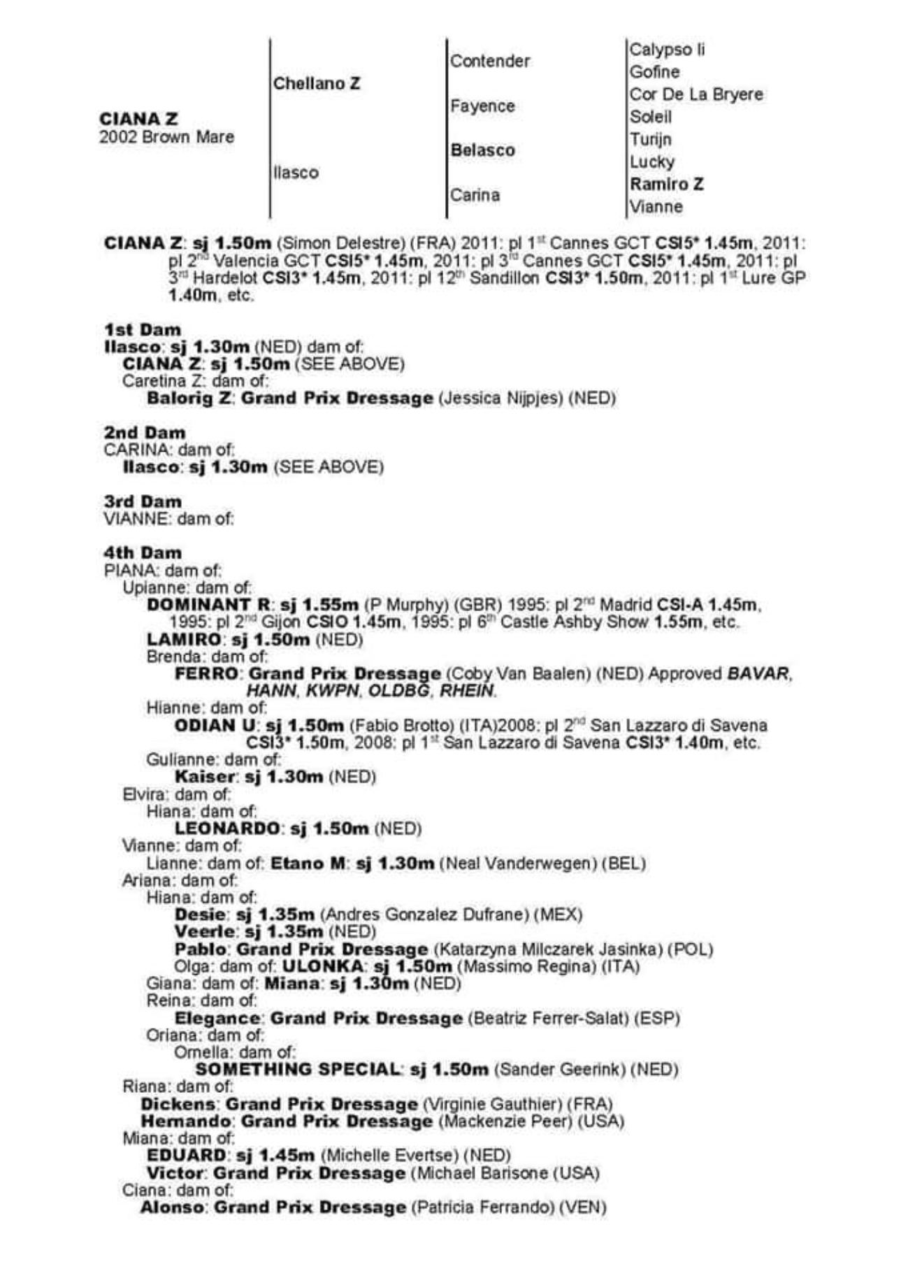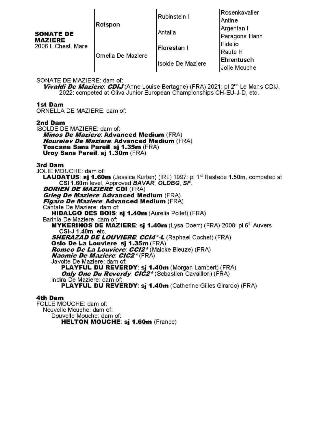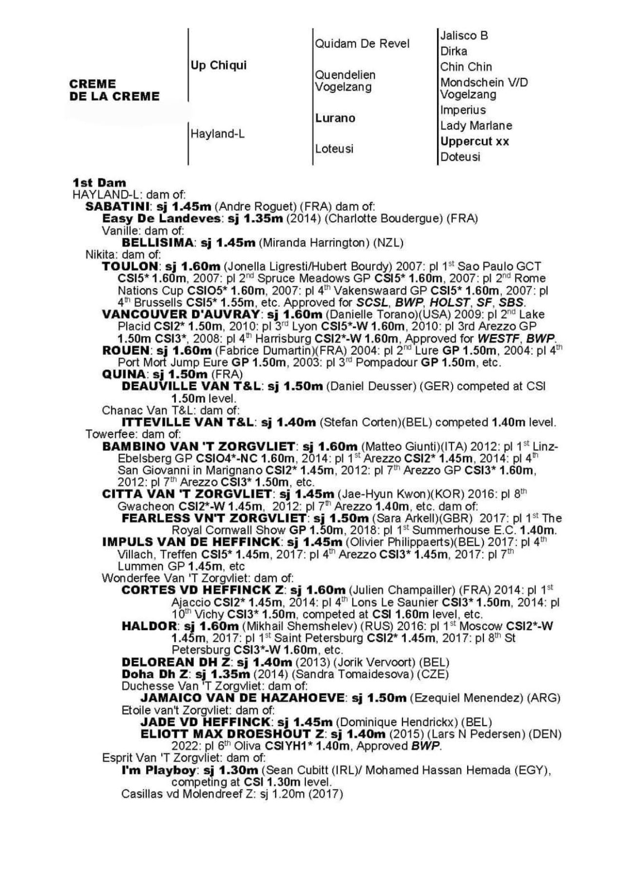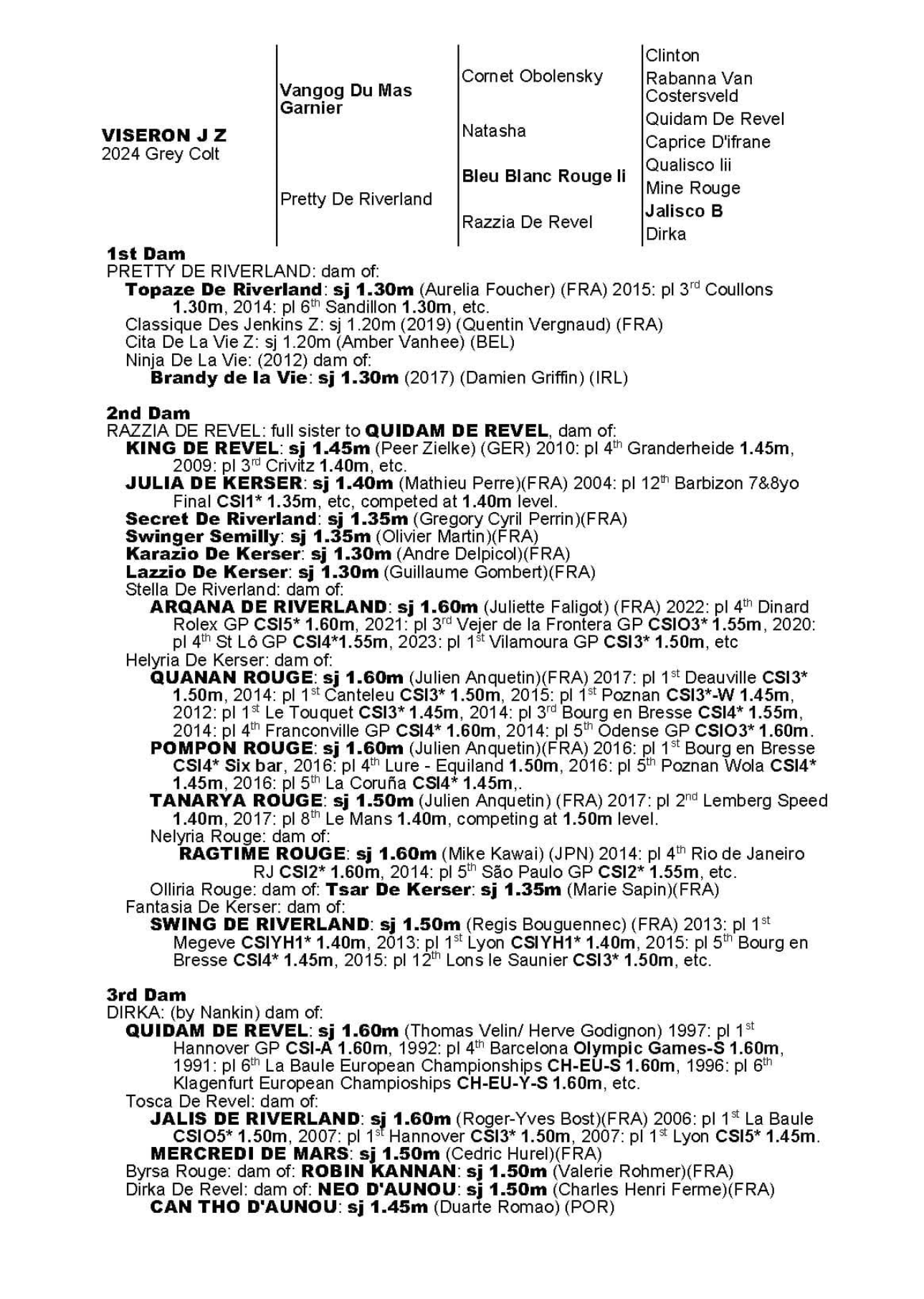 Dam is sister to 2 approved stallions.Grandam is sister of the amazing Quidam De Revel